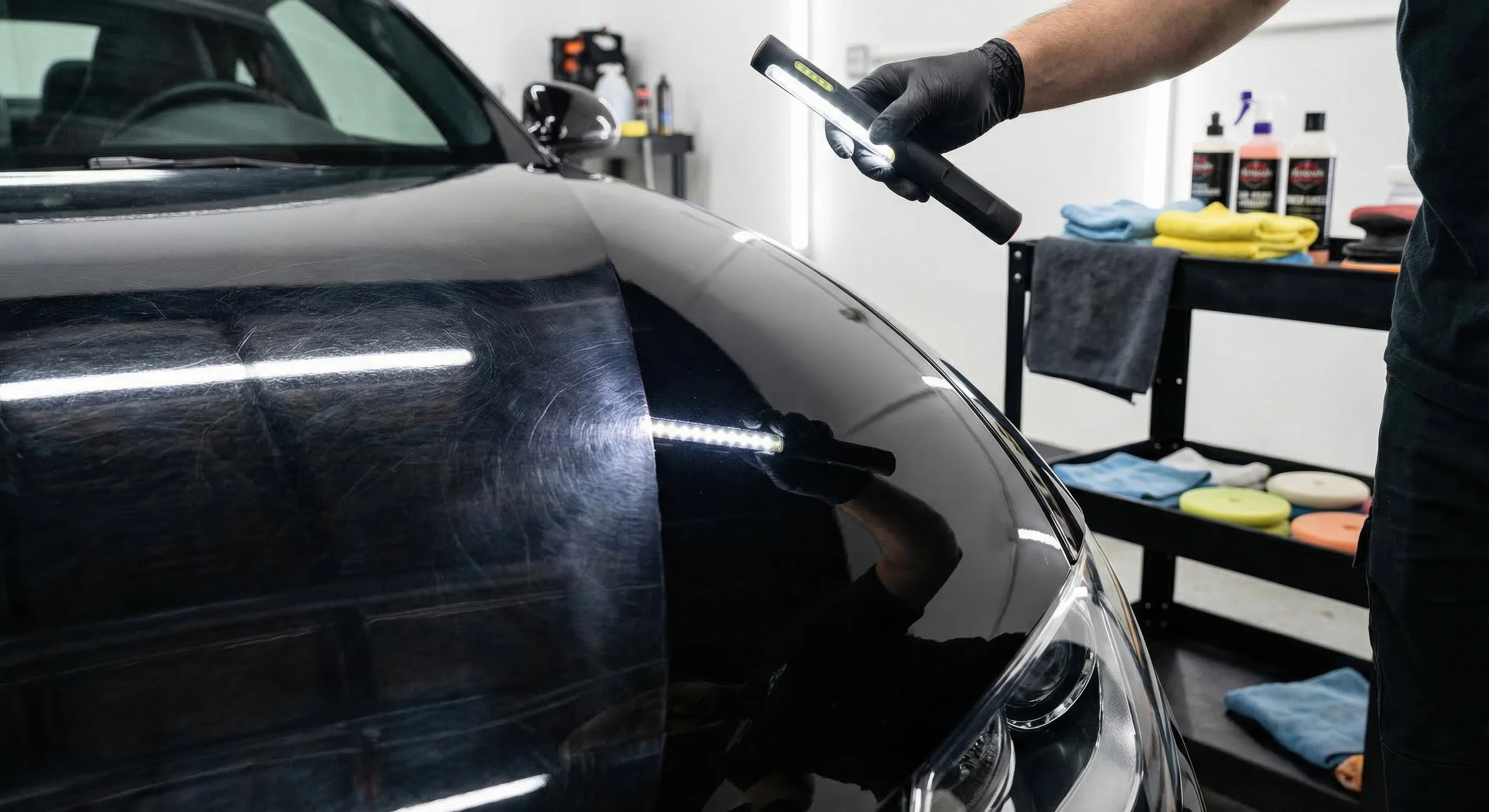A multi-stage correction that removes heavy defects, refines the finish, and delivers a near flawless, mirror-like result.